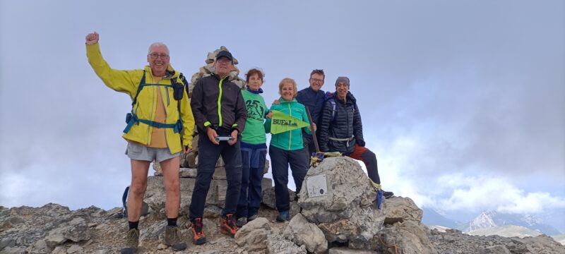 El diumenge vam fer l’ascensió al Cotiella tot passant per la “Brecha de las Brujas”, el “Collado de Cotiella” (2.664m.) i per un camp de dolines, possiblement el més gran del Pirineu, un paissatge lunar plagat d’avencs, vam seguir pel camí que ens va deixar a la “Colladeta de les Neiss” (2.714m.) i finalment vam arribar al cim.