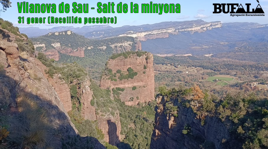 L’excursió surt de Vilanova de Sau, comarca d’Osona, prop del pantà de Sau. Farem una ruta circular passant per sota la Cingle de la Lleixa de l’Herba i la Cingle de l’Esquei on agafarem el Camí Vell de Vic per on pujarem fins al Salt de la Minyona, lloc on recollirem el pessebre. Després seguirem per damunt de la Cingle de Vilanova i baixarem a Vilanova de Sau pel Camí dels Romanins.