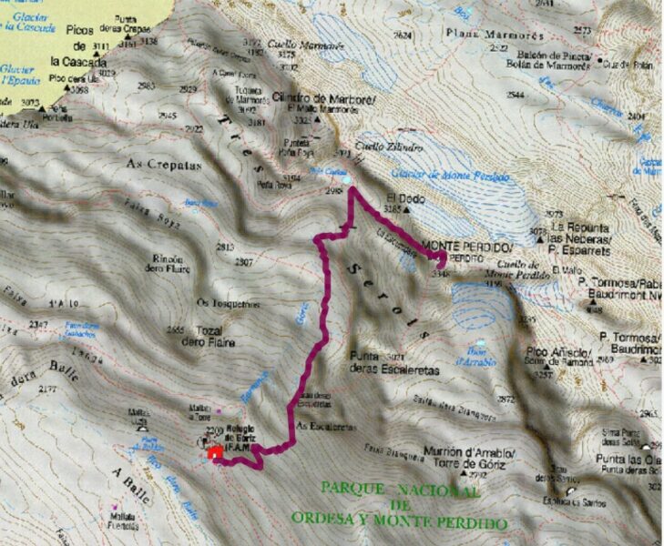 Diumenge farem un desnivell de 1.150 metres fins al cim i baixarem uns 2.000 metres. Tanmateix, les persones que no vulguin fer el cim del Mont Perdut tenen l’opció de realitzar algun cim més senzill dels voltants del refugi o simplement gaudir de l’entorn.