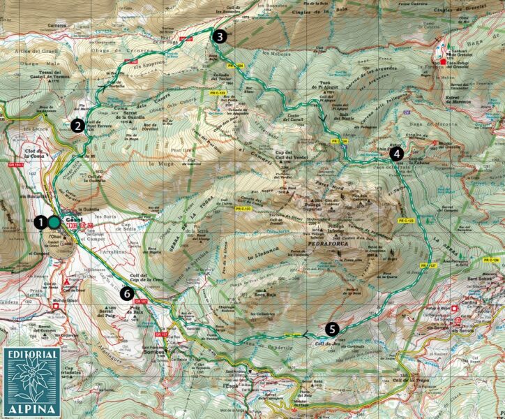 Es tracta d’un itinerari circular per l’emblemàtica muntanya del Pedraforca, dins del Parc Natural del Cadí-Moixeró, que ens permetrà contemplar unes espectaculars vistes de tots els seus vessants. L’itinerari transcorre al peu del massís entre frondosos boscos per antics camins històrics com el Camí dels Bons Homes, el dels Minaires o la ruta dels Segadors, podrem contemplar les extenses panoràmiques de les serres del Verd, d’Ensija i del Cadí tot gaudint de singulars paisatges com la magnífica vall del torrent de les Mulleres i la baga de Gresolet. Tanmateix, i si tenim temps, visitarem el castell medieval d’origen càtar de Gósol que ens farà pensar en el passat més recent i llunyà d’aquestes terres d’alta muntanya plena d’antics camins recorreguts per fugitius, càtars, contrabandistes, miners i traginers.
